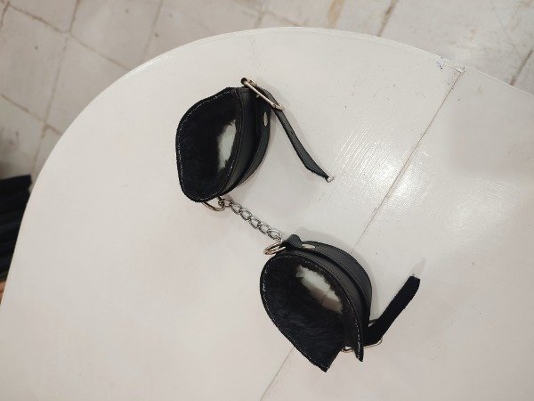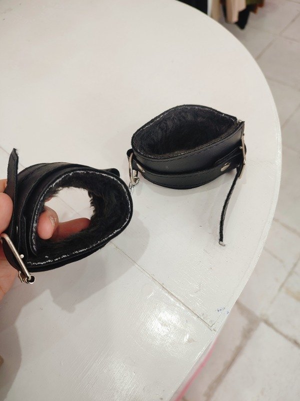 Esposas de peluche de cuero regulables negro